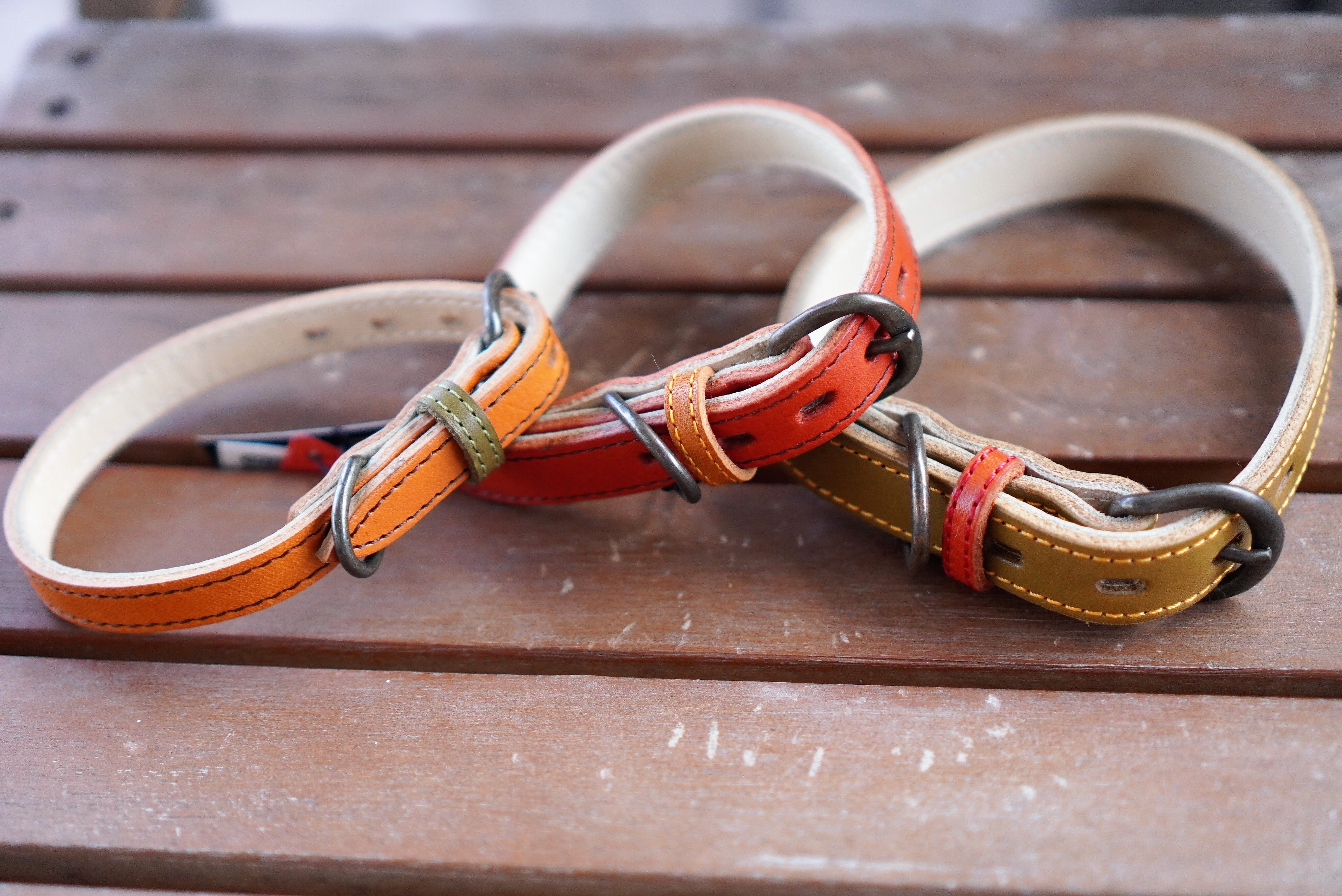 栃木レザーを使った高級なカラー。ステッチの色や指差しの色を変えてアクセントに。